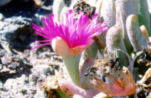 The iceplant was introduced to the island in the 1930's by the resident Coast Guard. It has crowded out most of the native plans and grasses on the island. Introduced plants make up 20% of the number of species on the island, covering about 25% of the ground. The flowers are most abundant in the spring. By August, there are only a few blossoms remaining.