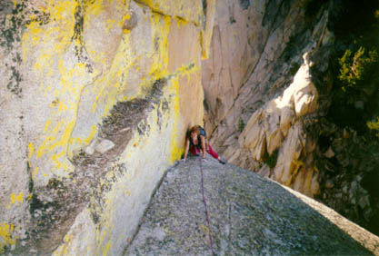 One of our favorite pitches was the finger crack that ran on forever. Larry and Bill laid it back and Cori stemmed it. Because the crack was so long, either technique can allow muscles to strain. Protection is good, and you can rest on pieces as you go.