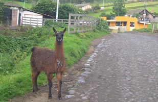 Our biking ended at a basketball court just in time to get us out of the heavy rain. The drive home wandered through the farms and suburbs, curbing around a stray llama, and back into the modern city of Quito. Exhausted but happy, we thanked Beto for an unimaginably beautiful day and hoped that some day we could come back and bike some more.