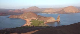 Landing on Bartolomé is like entering another world. The stark volcanic panorama is painted in brilliant reds, oranges, and warm browns. Little penguins play on the black lava rocks along the shores. Navigating though the Bainbridge Islands to Chinese Hat from this island shows the incredible diversity of the islands with pelicans, sea lions, Sally Lightfoots, and countless birds. A perfect Grand Finale for a perfect trip.