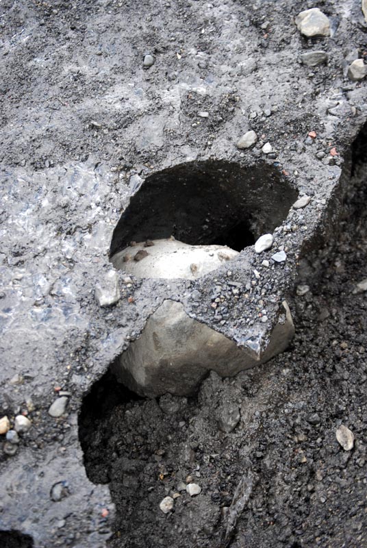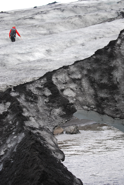 The ground is pretty wet and soft in some places and as we got close I had to get a few feet closer to get a good photo and that was when my left foot sunk and came back out of the earth with a sucking noise and no shoe. I stepped down with the other foot to get the shoe out and that foot sunk, too. Proper equipment is thus advised for 'around the glacier' as well as 'on the glacer'. I always have a spare pair of shoes and socks in the car so I did not mind too much, but to this day, I can not get the black ashen stain out of my pale blue sock.
