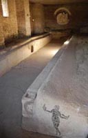 In Italian, this is referred to as Mitreo delle Terme del Mitra, if that helps. This place was difficult to find. When looking for it, we never found it. When we found some stairs leading into the ground at the end of the day and decided to see what was down there before we left, we happened upon what we had our eyes open for all day.