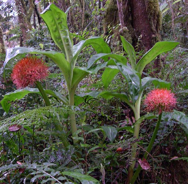 An occasional "star fire lily" makes an appearance. We saw these in Arusha national Park the day before and were looking forward to seeing them again on the mountain. The guide told me this is called a "Fire Ball Lily', or menodoxus manii. I have found nothing in all my research to confirm that, though when I looked at the Kamusi Project on the Yale website, it translated manii as "sperm" in Swahili. So perhaps the guide was pulling my leg and making up names. I think it might be a Scadoxus multiflorus which is part of the Amyrillis family.
