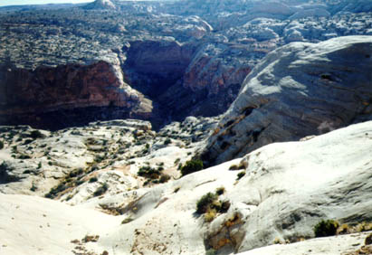 The hike out retraces the walk in. Because you had to hike into the canyon at the beginning, the hike out is strenuous for the average person. You should allow plenty of time to get out and bring a flashlight and an ample supply of water in a day pack. We got all of the hiking and driving information we needed from Canyonlands National Park (801) 259-7164 and the Hans Flat Ranger Station (801) 259-2652