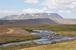 The Interior is like being on the moon. It quickly becomes graded dirt paths though rocky soil for miles and miles. There is the occasional water crossing and then it is back to dark sand and small rocks. The backdrop is a contrast to the dry ground with snow covered mountains.